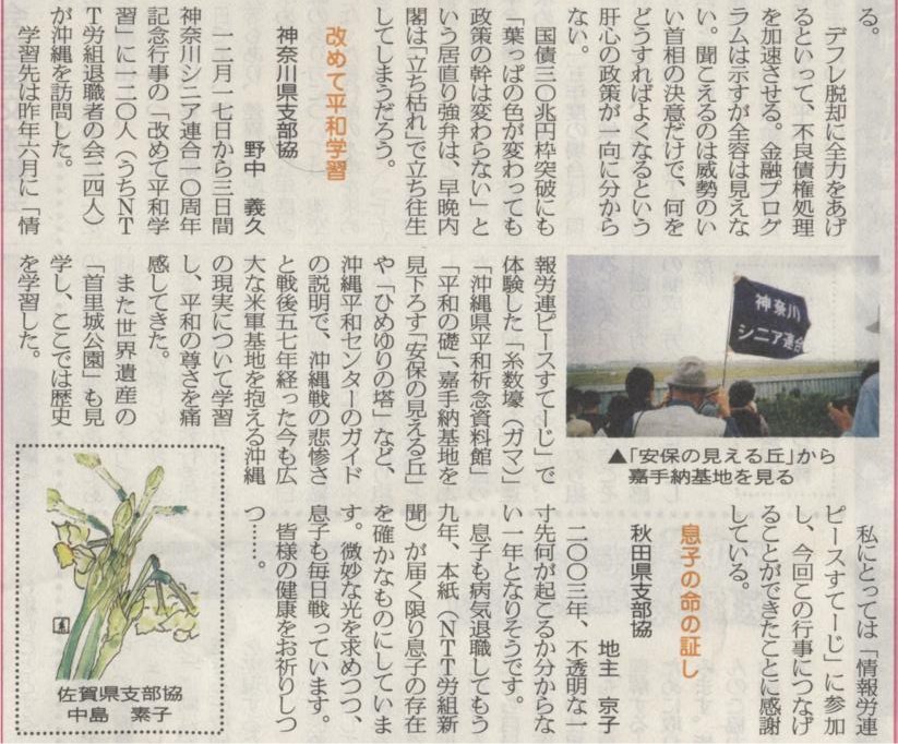 情報労連県協福祉ボランティア研修会 野中 〜5日 |